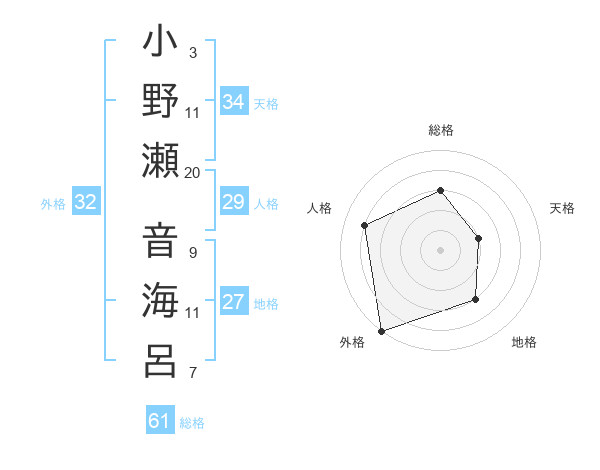 小野瀬 音海呂さんの総格は61画の3点!