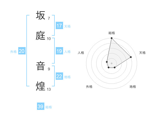 坂庭 音煌さんの総格は39画の5点!