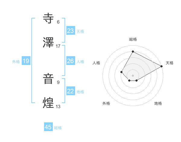 寺澤 音煌さんの総格は45画の4点!