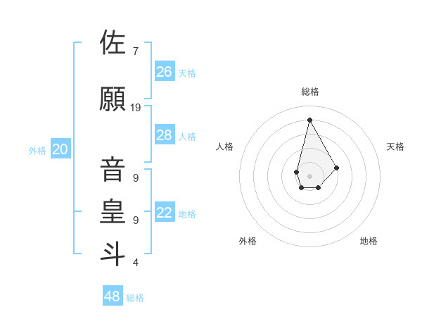 佐願 音皇斗さんを姓名の画数から五運を鑑定
