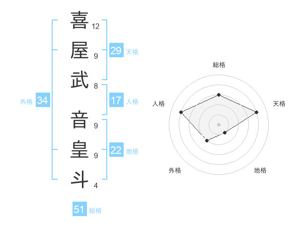 喜屋武 音皇斗さんを姓名の画数から五運を鑑定