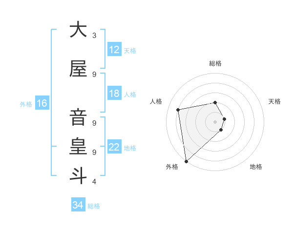 大屋 音皇斗さんを姓名の画数から五運を鑑定