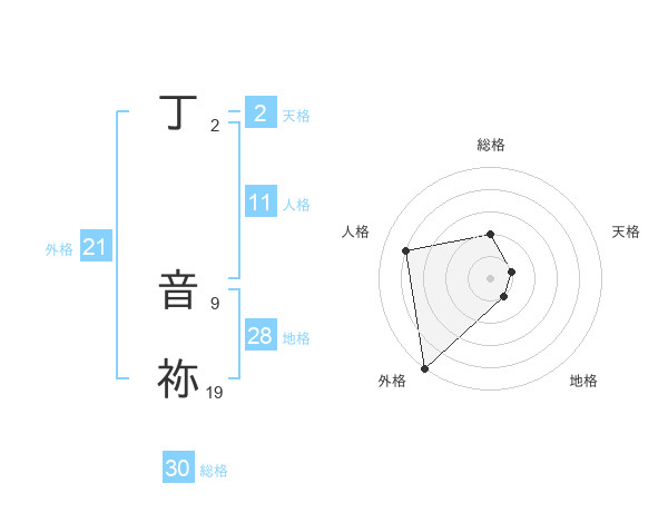丁 音祢さんの外格は21画の5点!