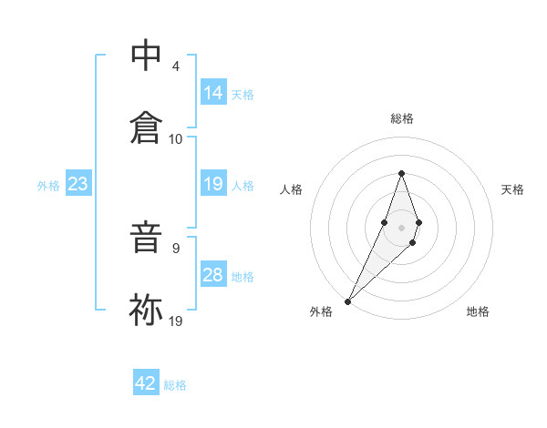 中倉 音祢さんを姓名の画数から五運を鑑定