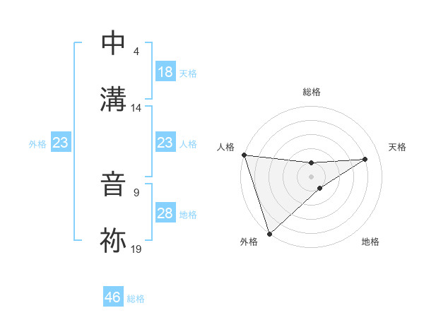 中溝 音祢さんを姓名の画数から五運を鑑定