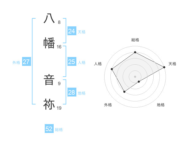 八幡 音祢さんの総格は52画の4点!