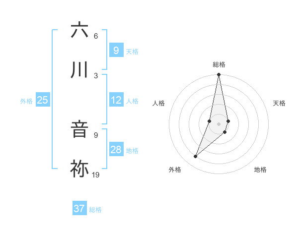 六川 音祢さんの総格は37画の5点!