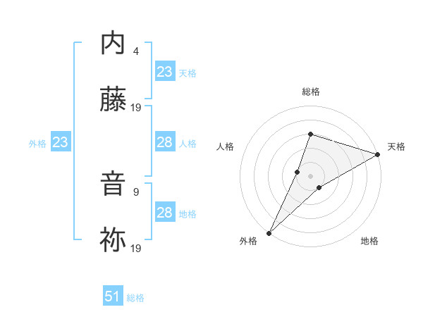 内藤 音祢さんの外格は23画の5点!
