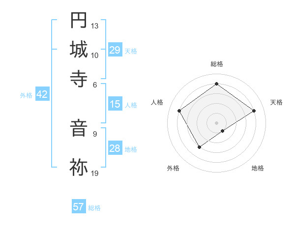 円城寺 音祢さんの総格は57画の4点!