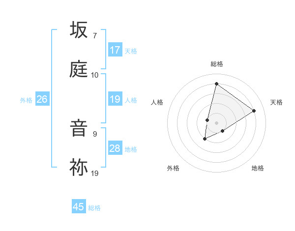 坂庭 音祢さんの総格は45画の4点!