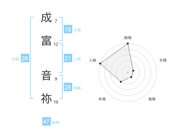 成富 音祢さんの総格は47画の5点!