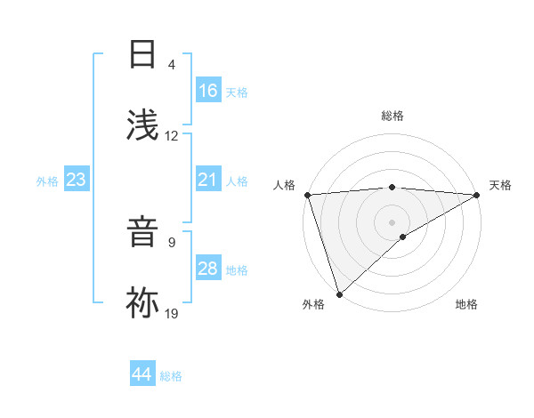 日浅 音祢さんの天格は16画の5点!