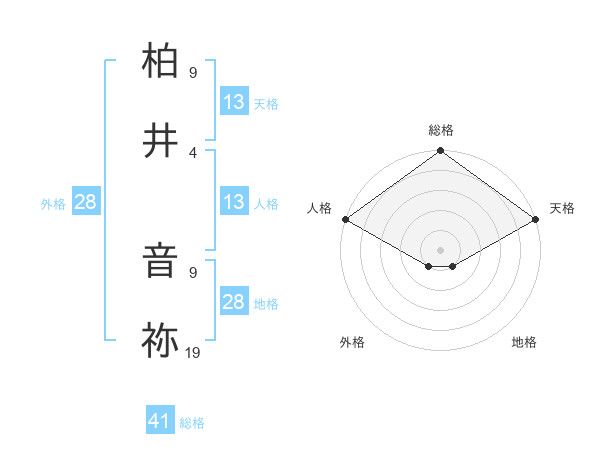 柏井 音祢さんの天格は13画の5点!