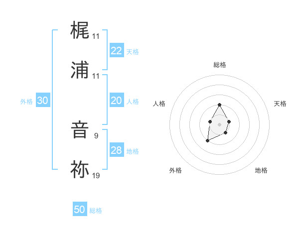 梶浦 音祢さんの総格は50画の2点!