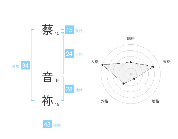 蔡 音祢さんを姓名の画数から五運を鑑定