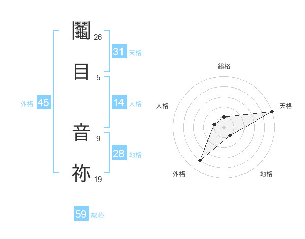 鬮目 音祢さんを姓名の画数から五運を鑑定