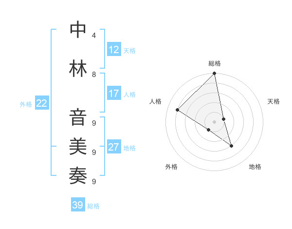 中林 音美奏さんを姓名の画数から五運を鑑定