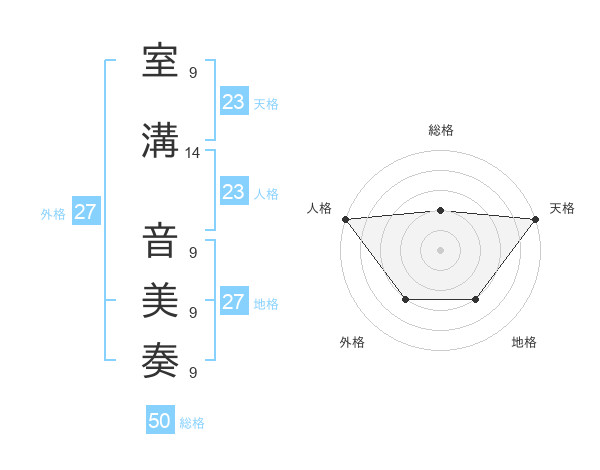 室溝 音美奏さんを姓名の画数から五運を鑑定