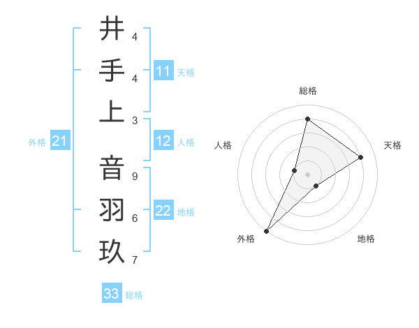 井手上 音羽玖さんの総格は33画の4点!