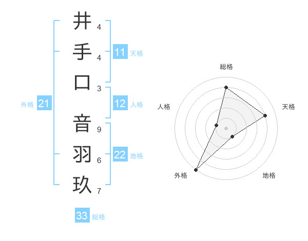 井手口 音羽玖さんを姓名の画数から五運を鑑定