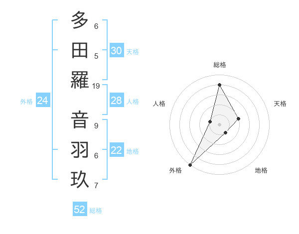 多田羅 音羽玖さんの総格は52画の4点!