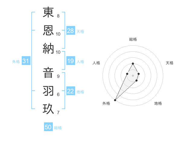東恩納 音羽玖さんを姓名の画数から五運を鑑定