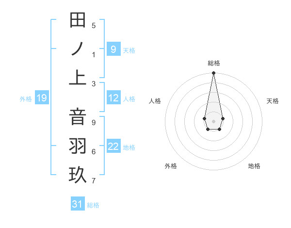 田ノ上 音羽玖さんの総格は31画の5点!