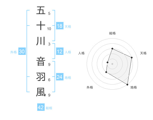 五十川 音羽風さんを姓名の画数から五運を鑑定