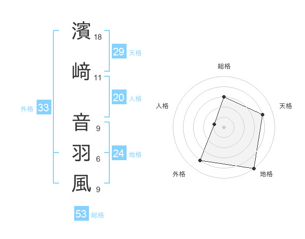 濱﨑 音羽風さんを姓名の画数から五運を鑑定