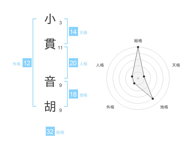 小貫 音胡さんの総格は32画の5点!