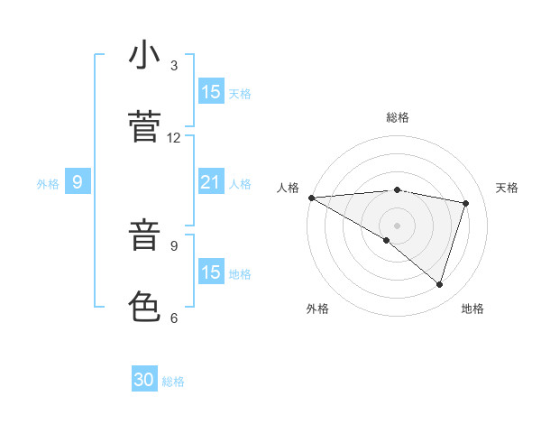 小菅 音色さんの総格は30画の2点!