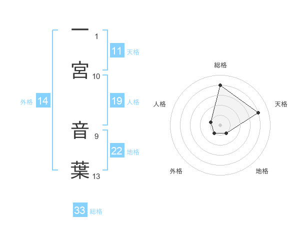 一宮 音葉さんを姓名の画数から五運を鑑定