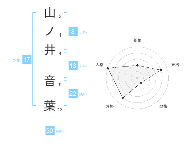 山ノ井 音葉さんを姓名の画数から五運を鑑定