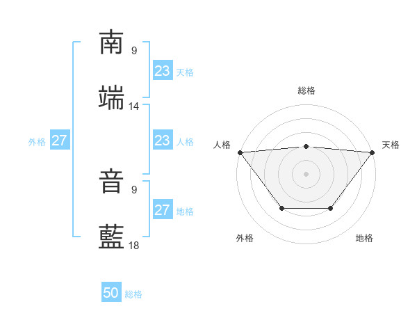 南端 音藍さんの総格は50画の2点!