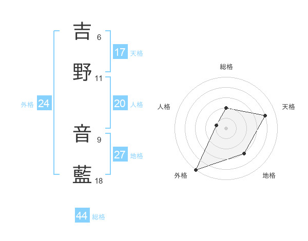 吉野 音藍さんの天格は17画の4点!