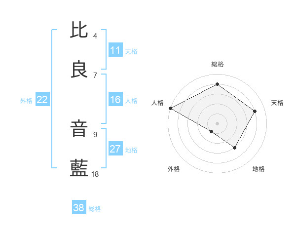 比良 音藍さんの総格は38画の4点!
