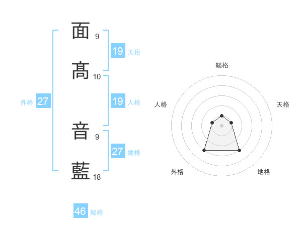 面髙 音藍さんを姓名の画数から五運を鑑定