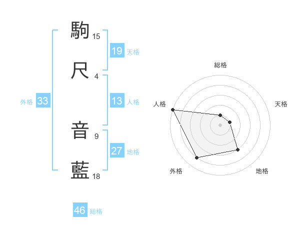 駒尺 音藍さんを姓名の画数から五運を鑑定