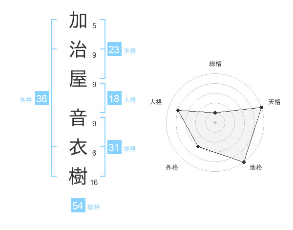 加治屋 音衣樹さんの外格は36画の3点