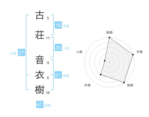 古荘 音衣樹さんを姓名の画数から五運を鑑定