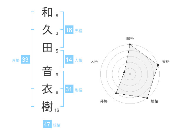 和久田 音衣樹さんを姓名の画数から五運を鑑定