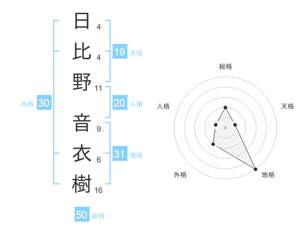 日比野 音衣樹さんを姓名の画数から五運を鑑定