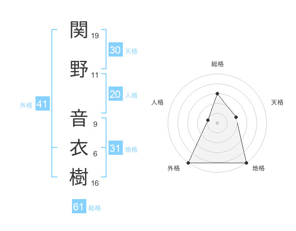 関野 音衣樹さんを姓名の画数から五運を鑑定