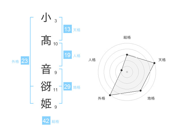 小髙 音谺姫さんを姓名の画数から五運を鑑定