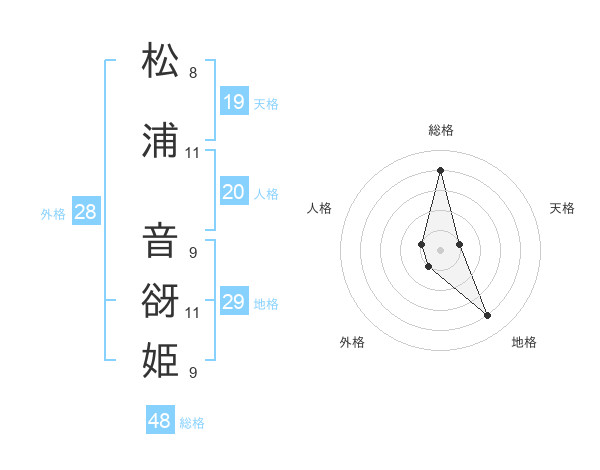 松浦 音谺姫さんの総格は48画の4点!