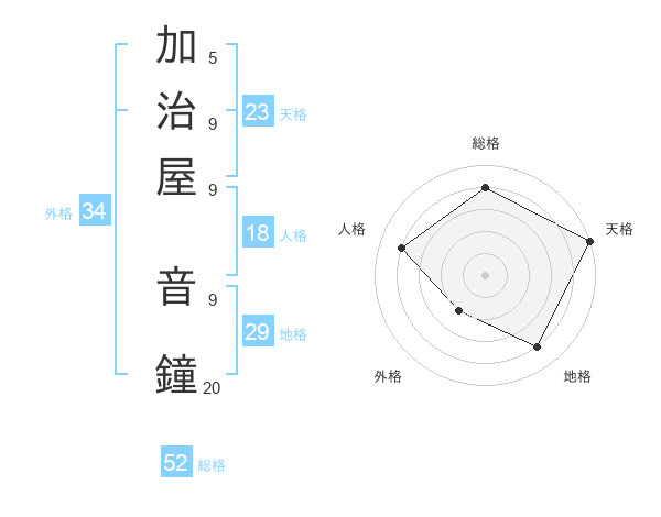 加治屋 音鐘さんを姓名の画数から五運を鑑定