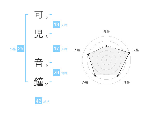 可児 音鐘さんの総格は42画の3点!