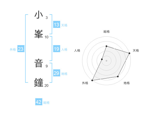小峯 音鐘さんを姓名の画数から五運を鑑定