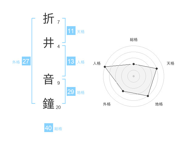 折井 音鐘さんの総格は40画の2点!
