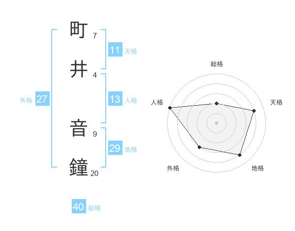 町井 音鐘さんを姓名の画数から五運を鑑定